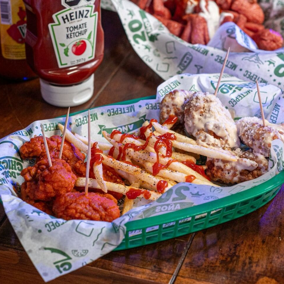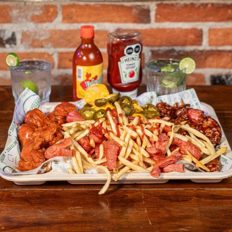 10 Alitas, 10 boneless, 200 g de nachos clásicos, 200 g de papas a la francesa, 200 g de salchipulpos.