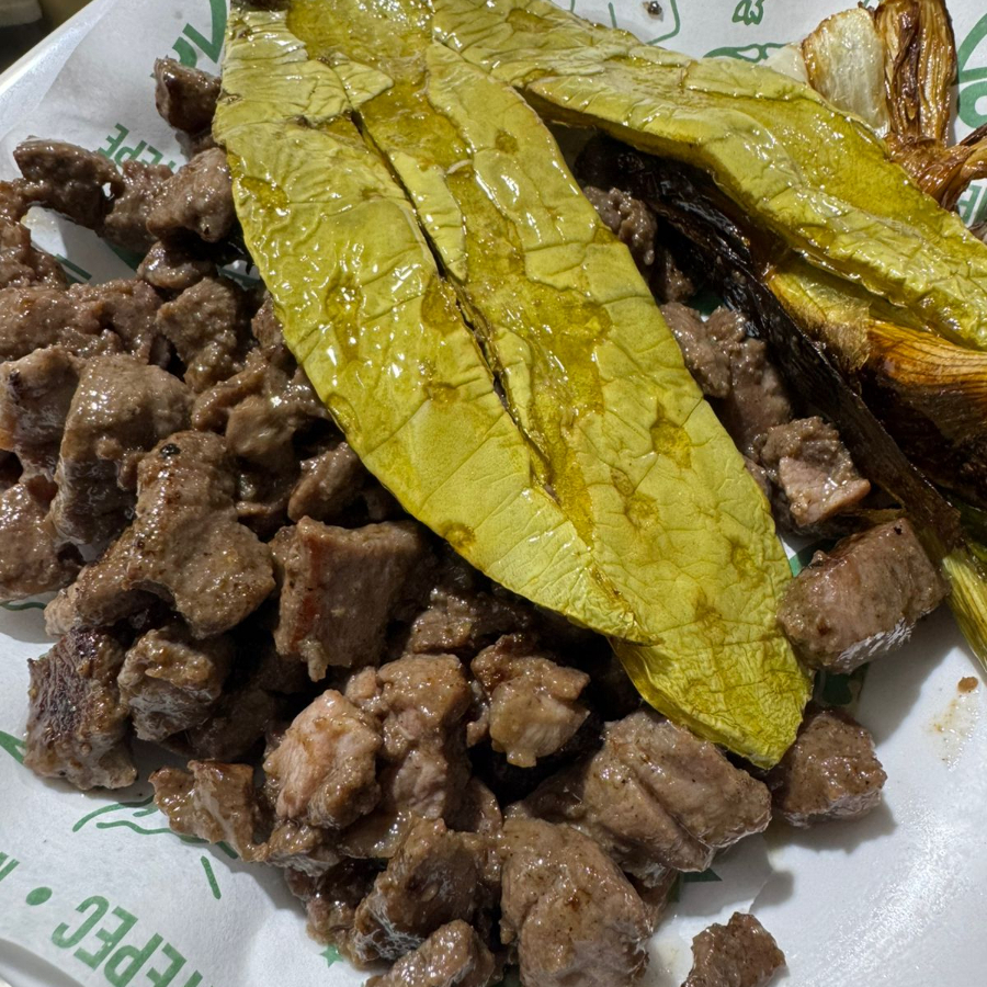 250 gr de bistec de resc acompañado de nopal y cebollas asadas. incluye tortillas, salsa y limones.