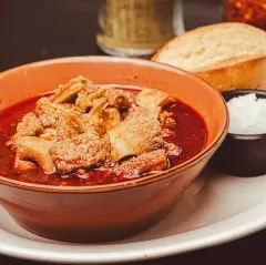 400 ml de Birria de carne de res en caldo de chile rojo.