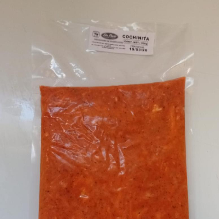 Elaborada con carnitas de cerdo, bañada en salsa no picante y cebollitas moradas encurtidas.