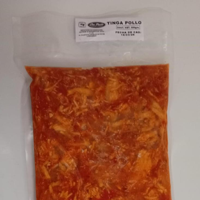 1 kilo de tinga de pollo, con cebolla fileteada y jitomate