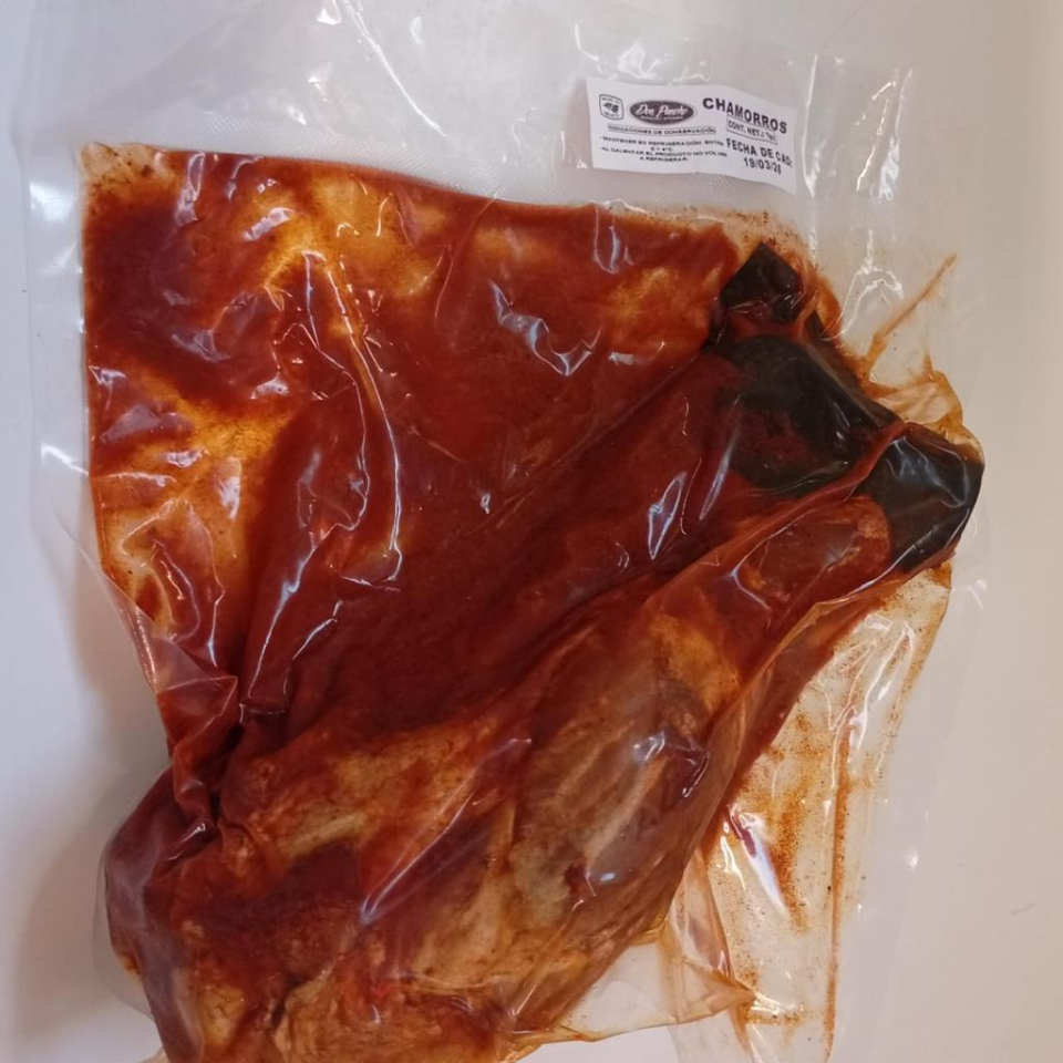 Chamorro de cerdo en salsa de achote acompañado de tortillas de maíz.