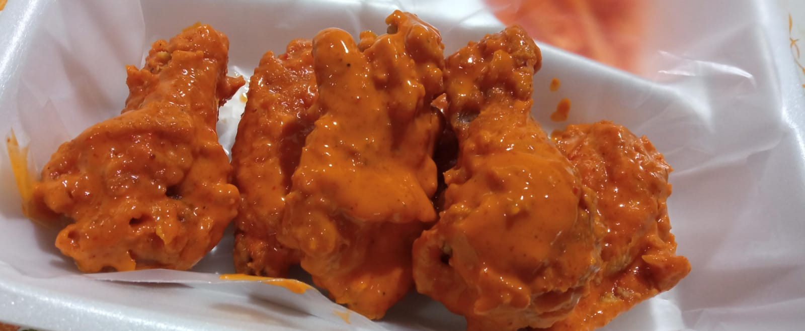 150 gr (pesados en crudo) de boneless bañados en la salsa de tu preferencia acompañados de aderezo tipo ranch y zanahoria