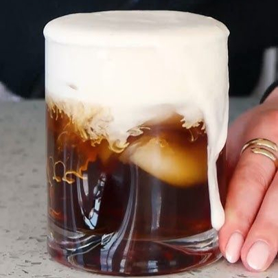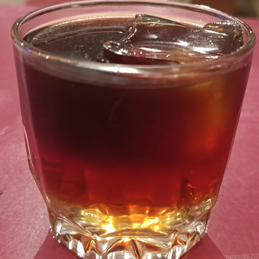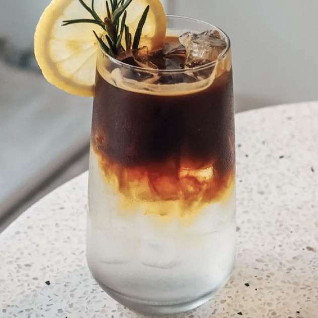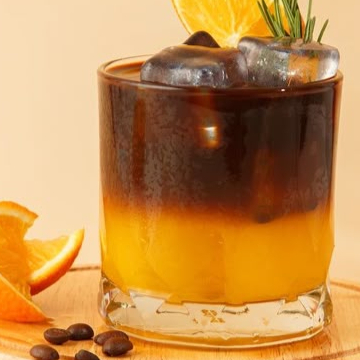 Jugo de naranja, cold brew macerado en frío por 18 horas y un toque de romero