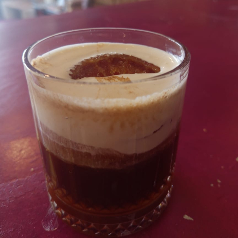 Cafe filtrado con toque Citrico y Dulce, terminado con Crema y ralladura de Naranja