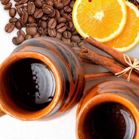 Café de olla, condimentado con naranja, clavo, anis y piloncillo