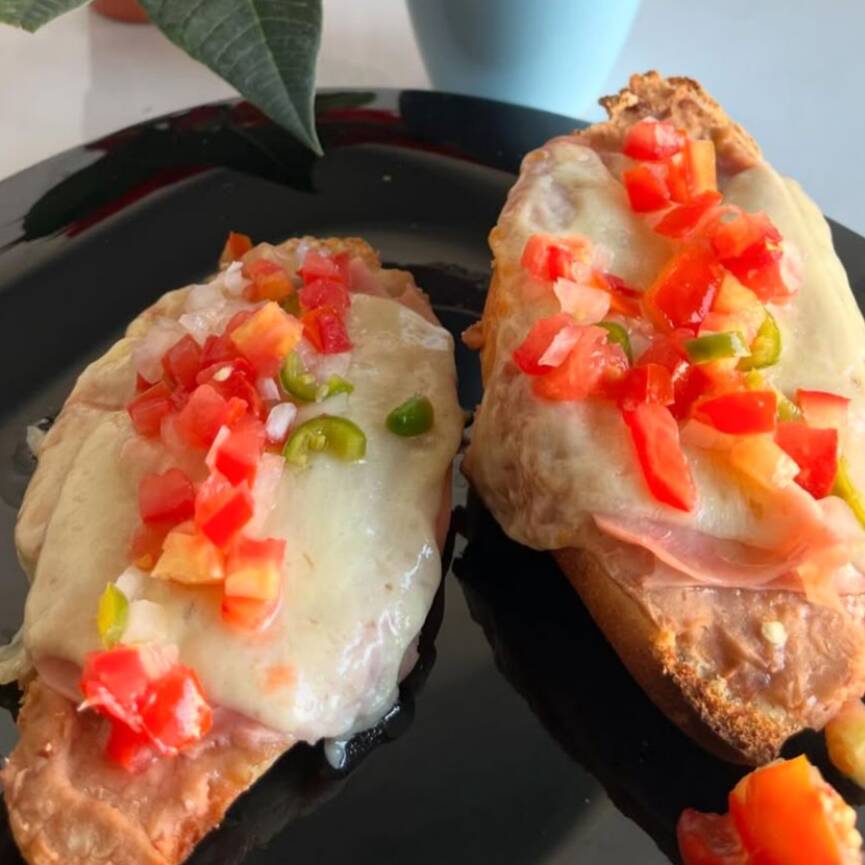 Orden con dos piezas con frijol,jamon,queso manchego acompañado con chilitos en vinagre.