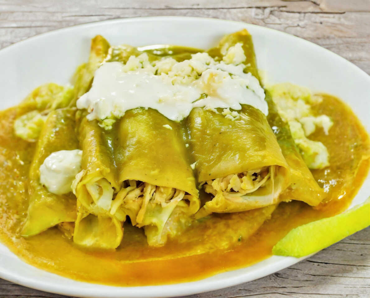 tortilla de mano, mole verde,queso oaxaca,nopales,salsa
