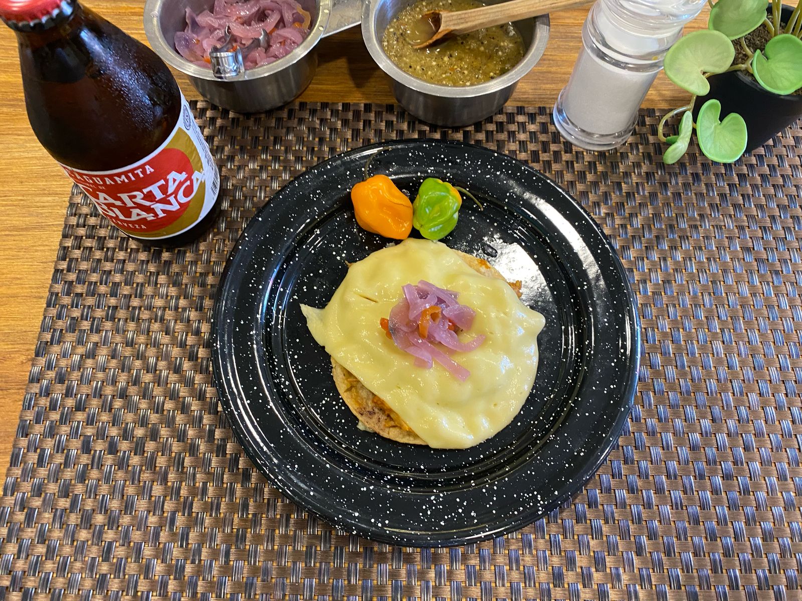 Acompañado de cebolla en escabeche y salsa habanera