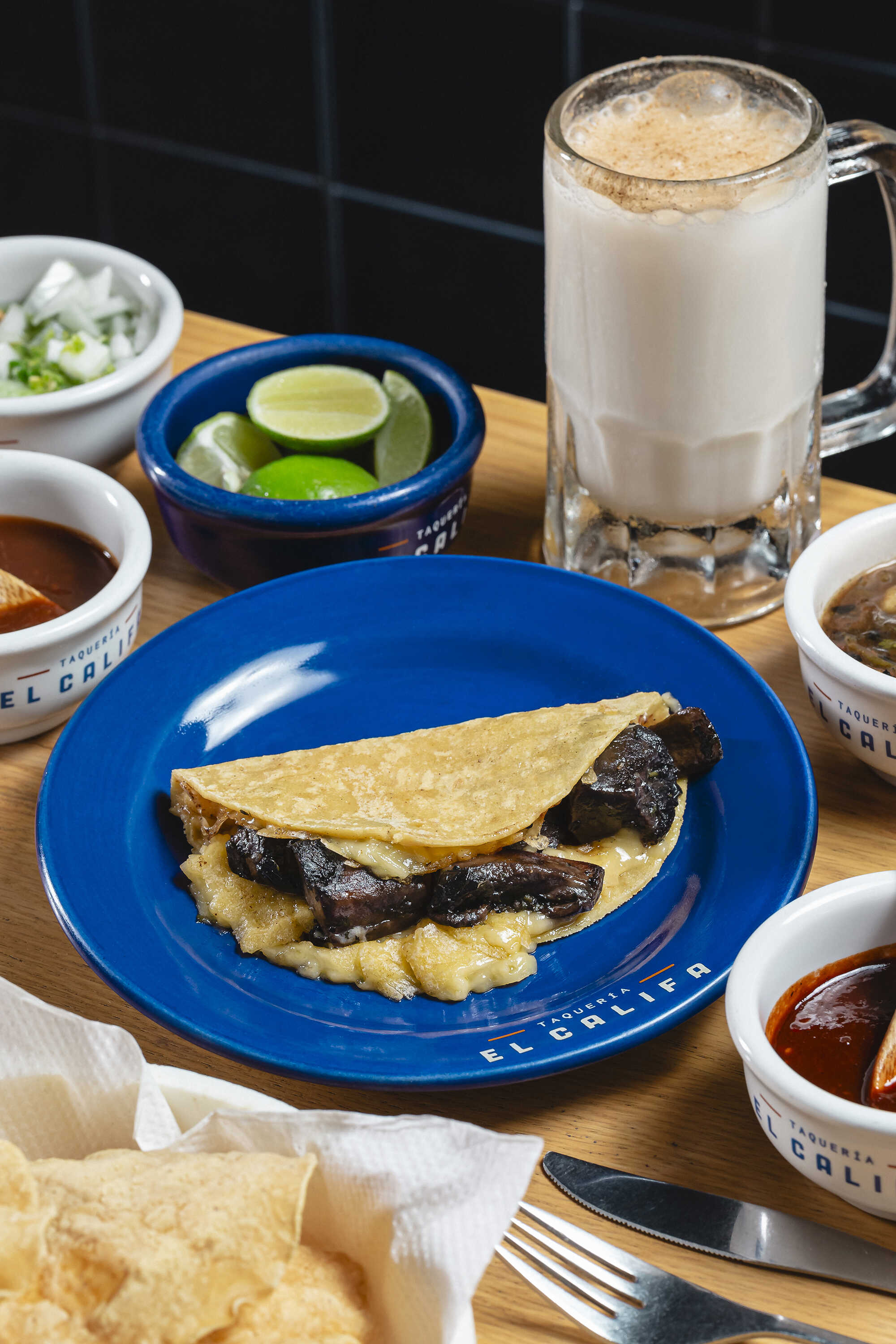 100 g Tortilla de maíz recién hecha con queso oaxaca y champiñones portobello