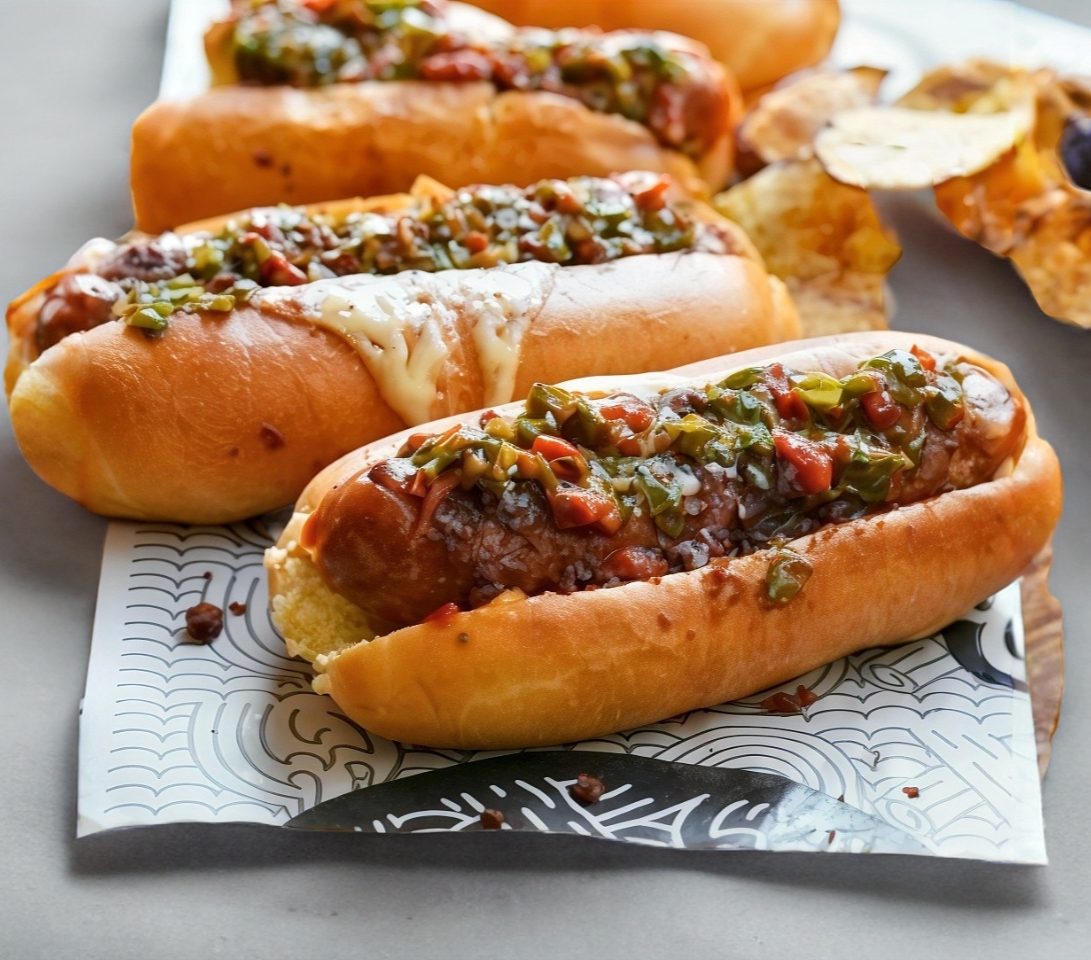 Pan crujiente 🥖 con chorizo argentino a la parrilla 🌭 y un toque de chimichurri casero 🌿🔥 ¡Sabor auténtico que conquista! 😋✨