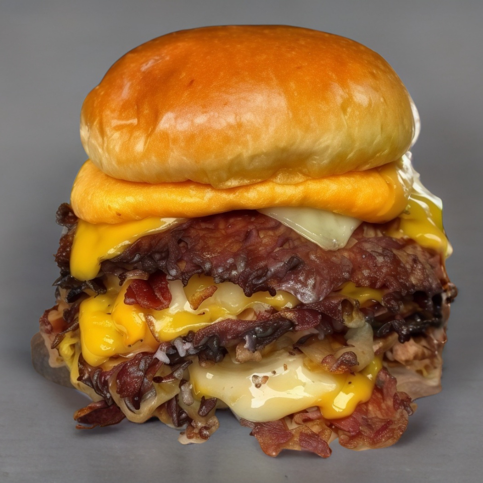 Disfruta de esta delicia con pan suave, dos jugosos medallones de carne, crujiente tocino, una irresistible mezcla de queso amarillo y Oaxaca, cebolla caramelizada y aderezos especiales que elevan cada mordida. ¡Perfecta para los amantes del queso y el buen sabor! 😋🔥
