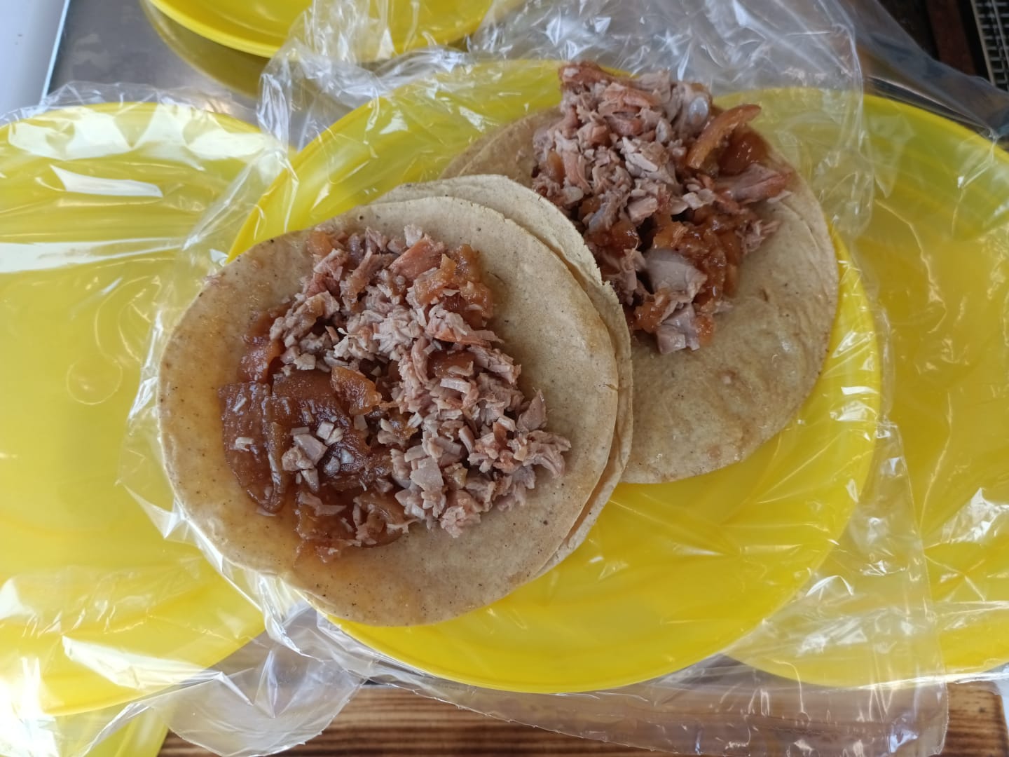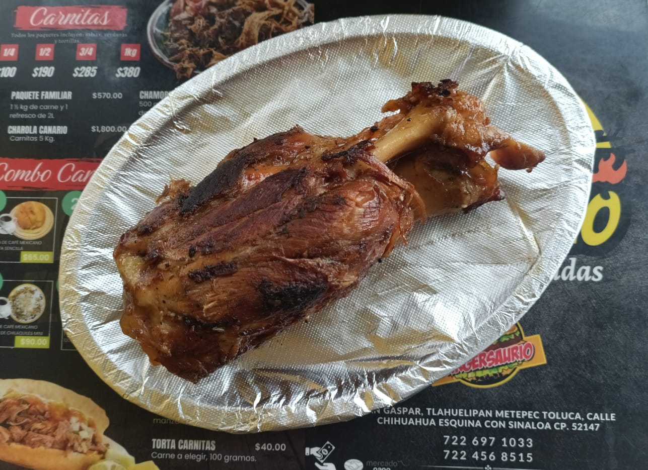 Aproximadamente 500 gramos de chamorro, incluyen incluye salsas, verduras y tortillas, con coca cola de 600 ml