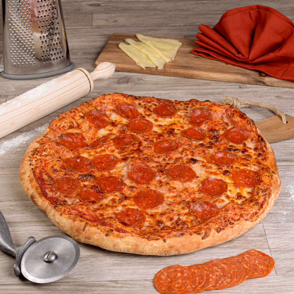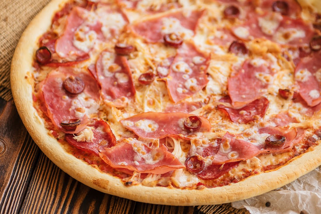 Pizza hawaiana grande de (35cm) (8 rebanadas) con jamón, queso, piña. (Para 3 máx. personas)