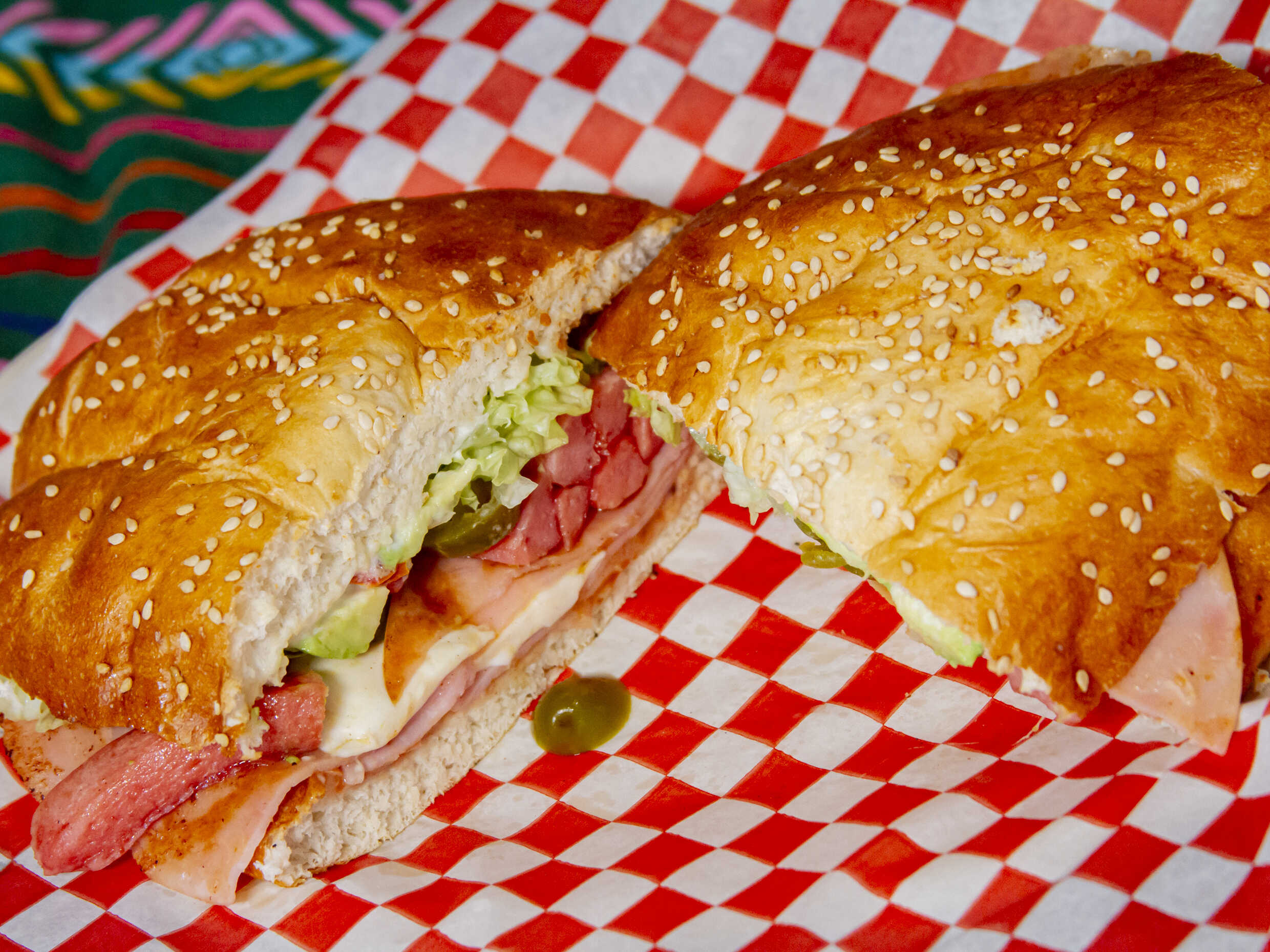 Pan doble tamaño, jamón, salchicha, quesillo, aguacate, jitomate, cebolla, chiles o salsa.