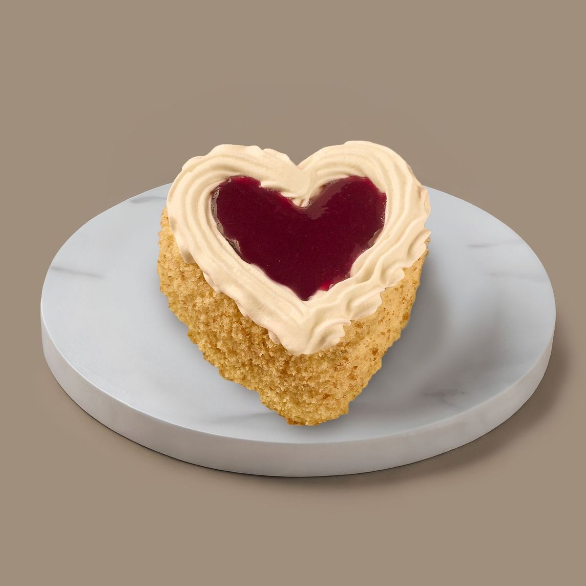 Un cheesecake en forma de corazón, suave y cremoso, con un toque crujiente de galleta y una capa de zarzamora que le da ese contraste dulce y frutal que se disfruta desde la primera cucharada.
