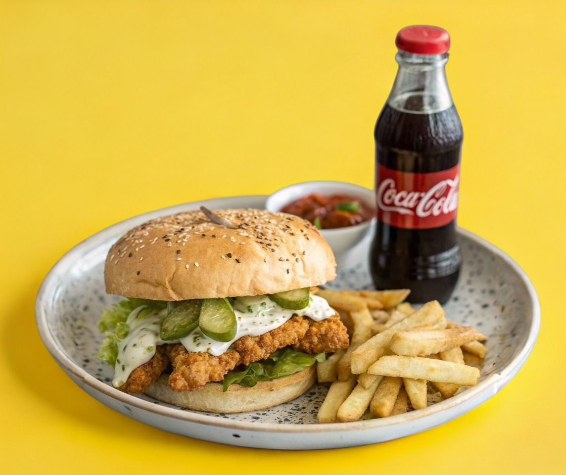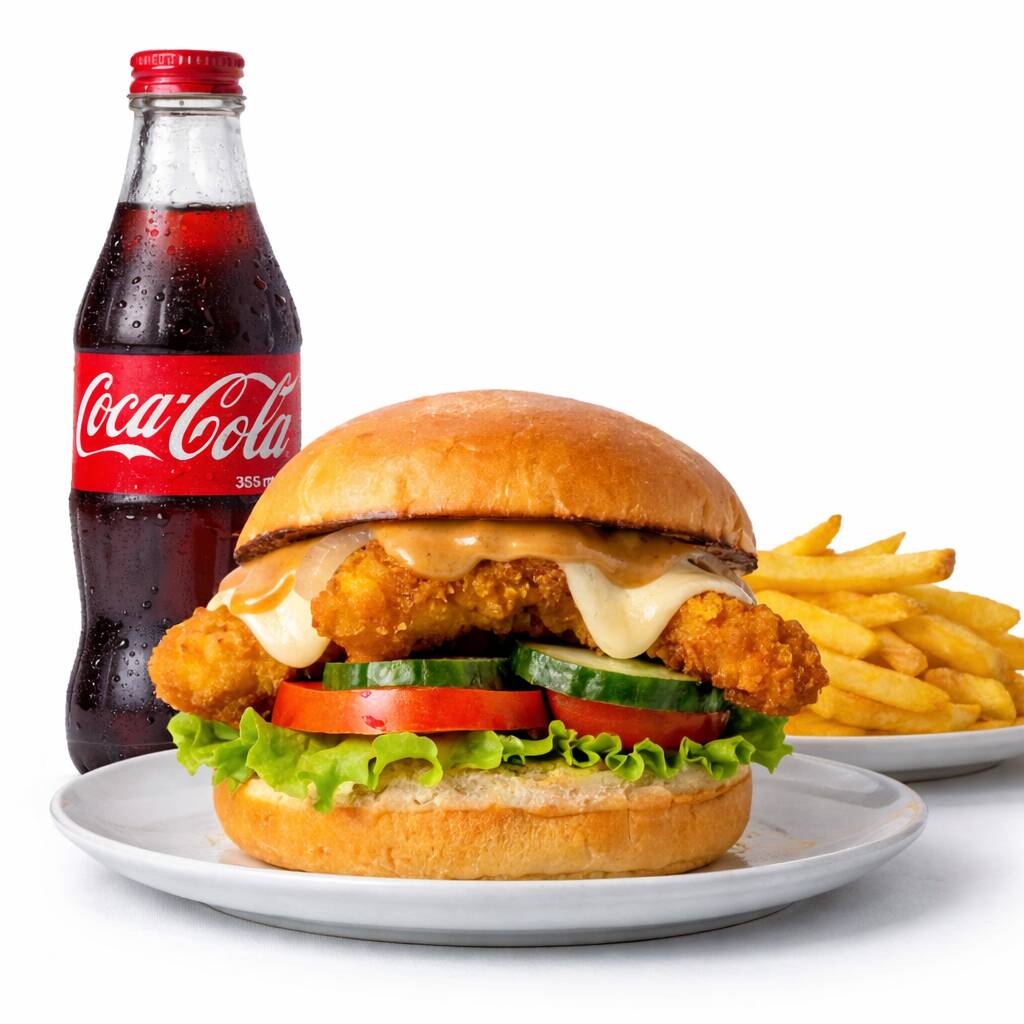 Una hamburguesa Chicken tender ,100gr Papas a la Francesa ,1 Coca cola 355ml