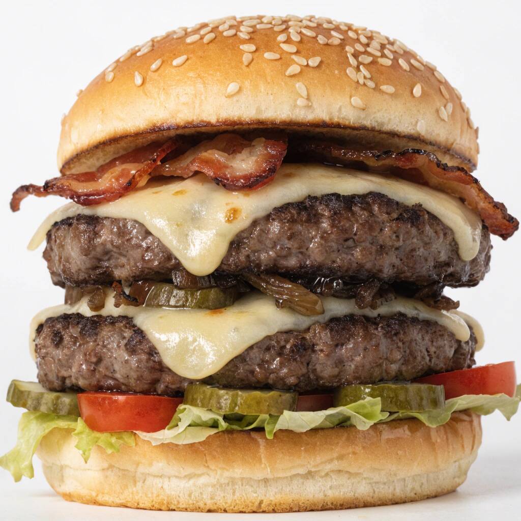 (2 Carnes de Res, Mayonesa de la Casa, Kethcup, Tocino, Jitomate, Cebolla,Lechuga y Queso Manchego)