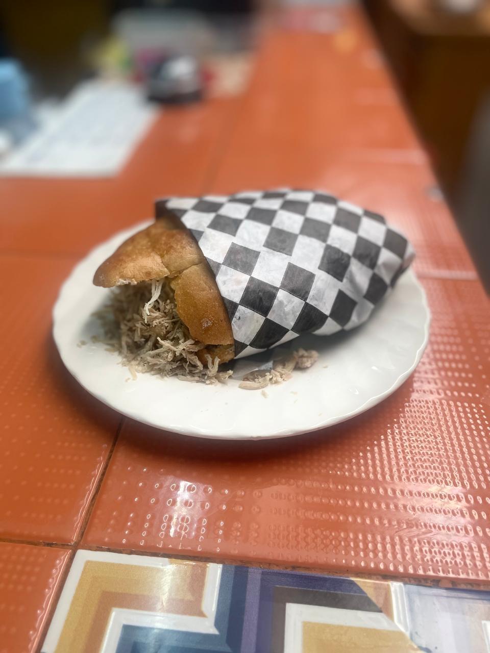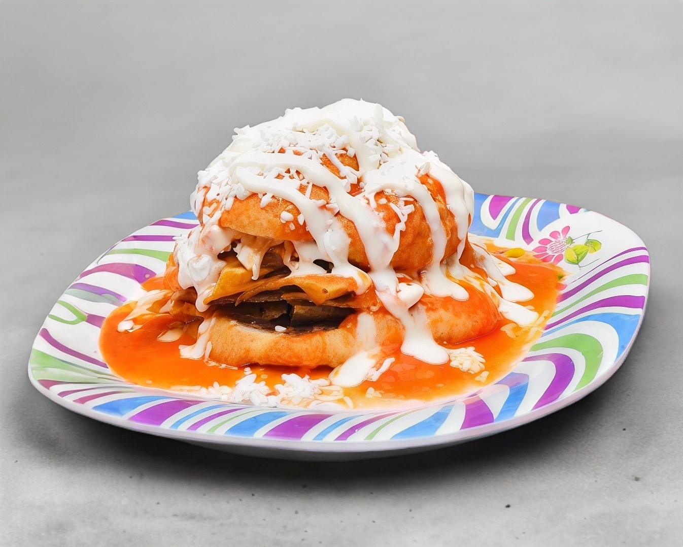 Torta de chilaquiles bañada en salsa.