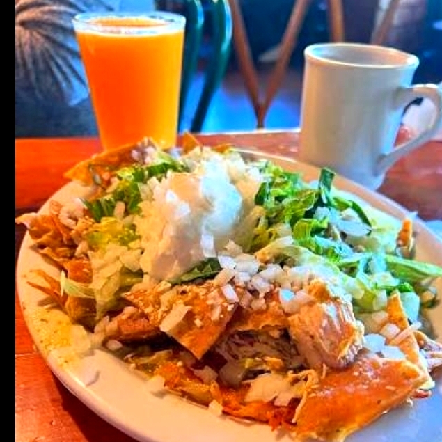 2 Ordenes de chilaquiles sencillo 2Hockes 2 Cafes 2 jugos