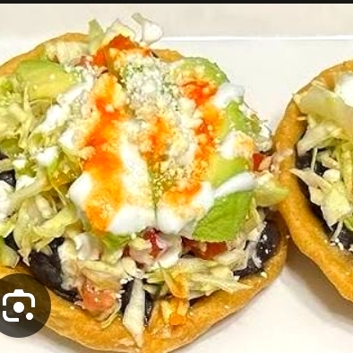 Sope de tinga de pollo frijoles lechuga queso y crema
