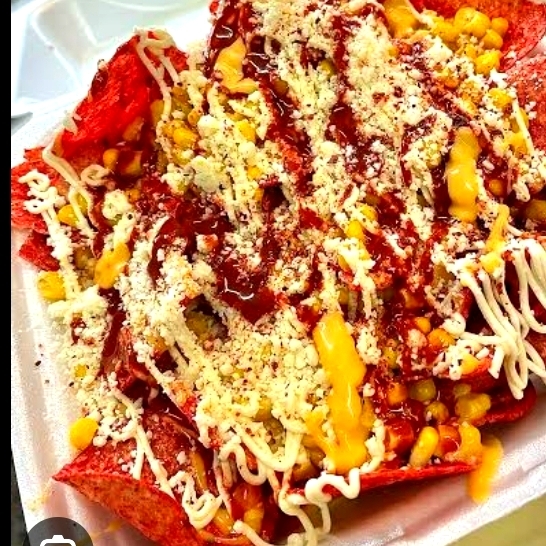 Totopos bañados en salsa verde con bistec lechuga queso y crema
