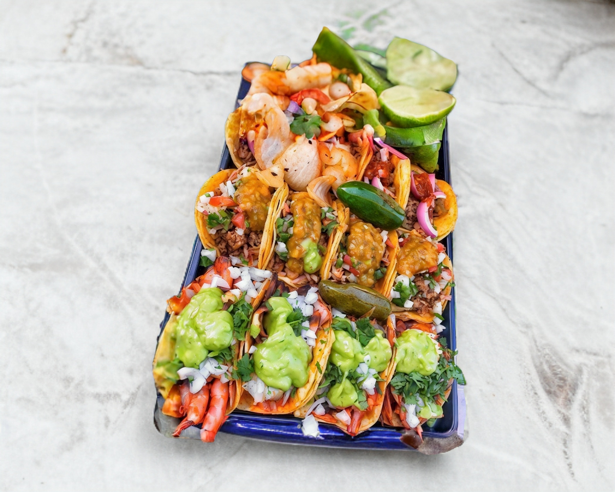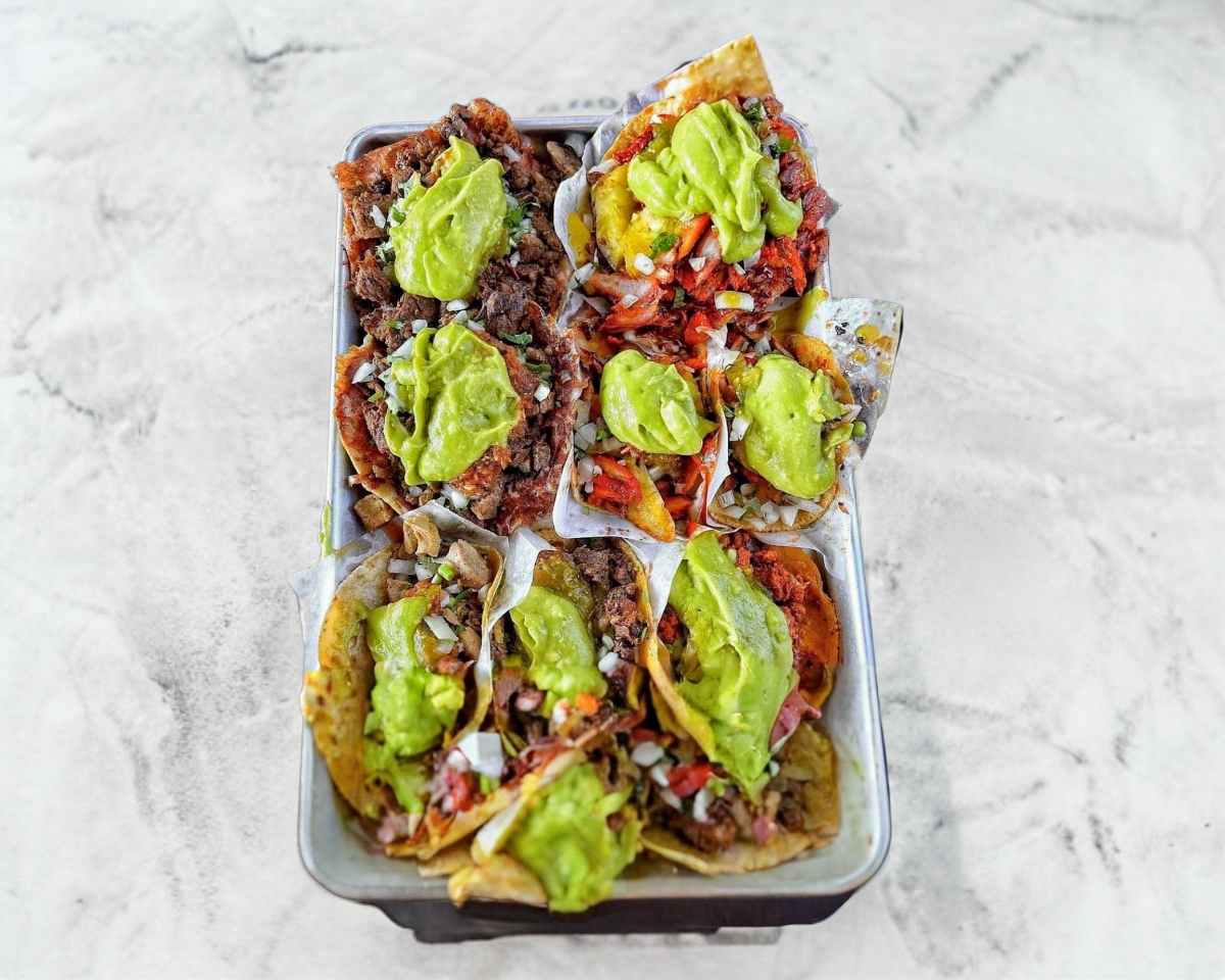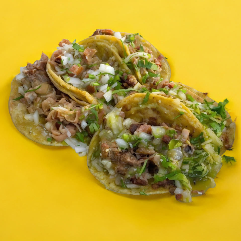 2 tortillinas con sus ingredientes a elegir, queso oaxaca, cebolla y papas a la francesa.