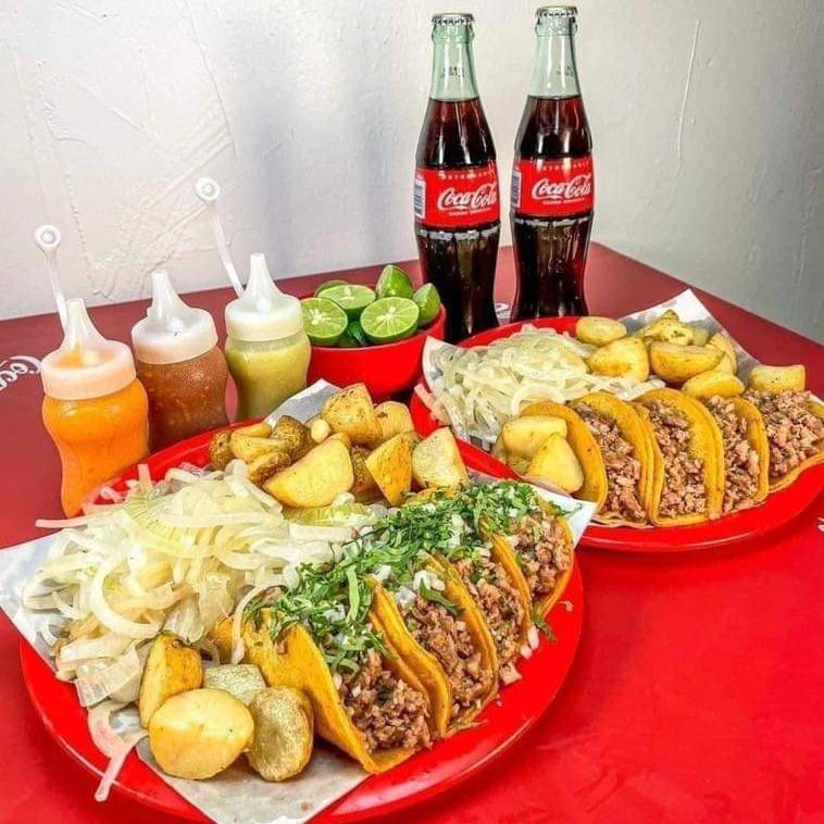 Un poco de todo ( Cecina, Adobada, bistec, chorizo verde y rojo)2 Coca-Cola