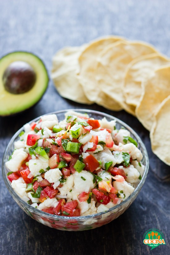Sierra marinada en limón con jitomate, cebolla y cilantro.