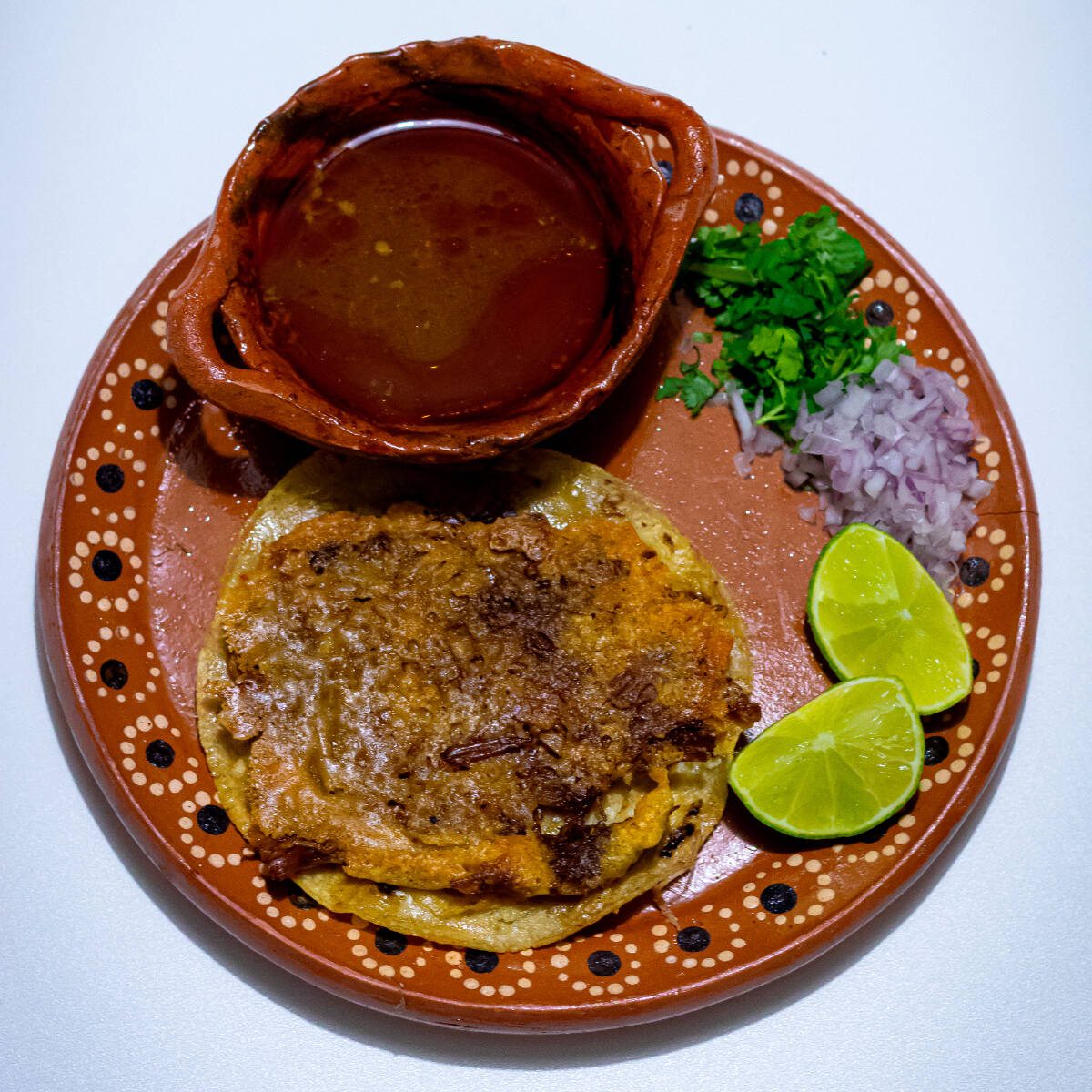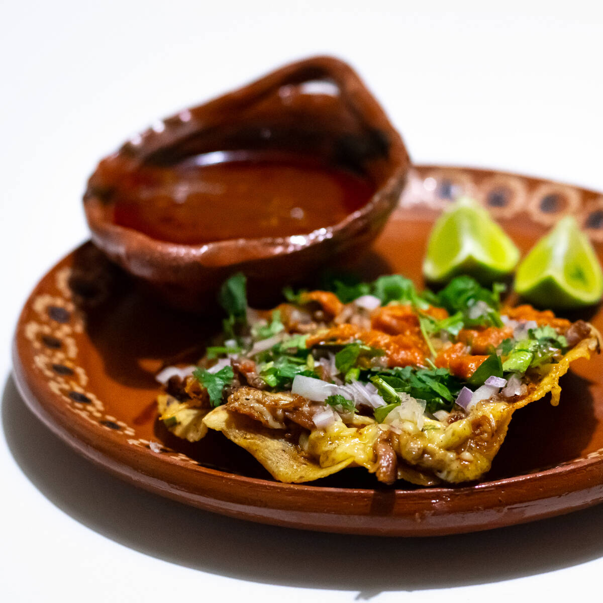 Relleno de pepino, aguacate y queso crema bañado en salsa tampico.