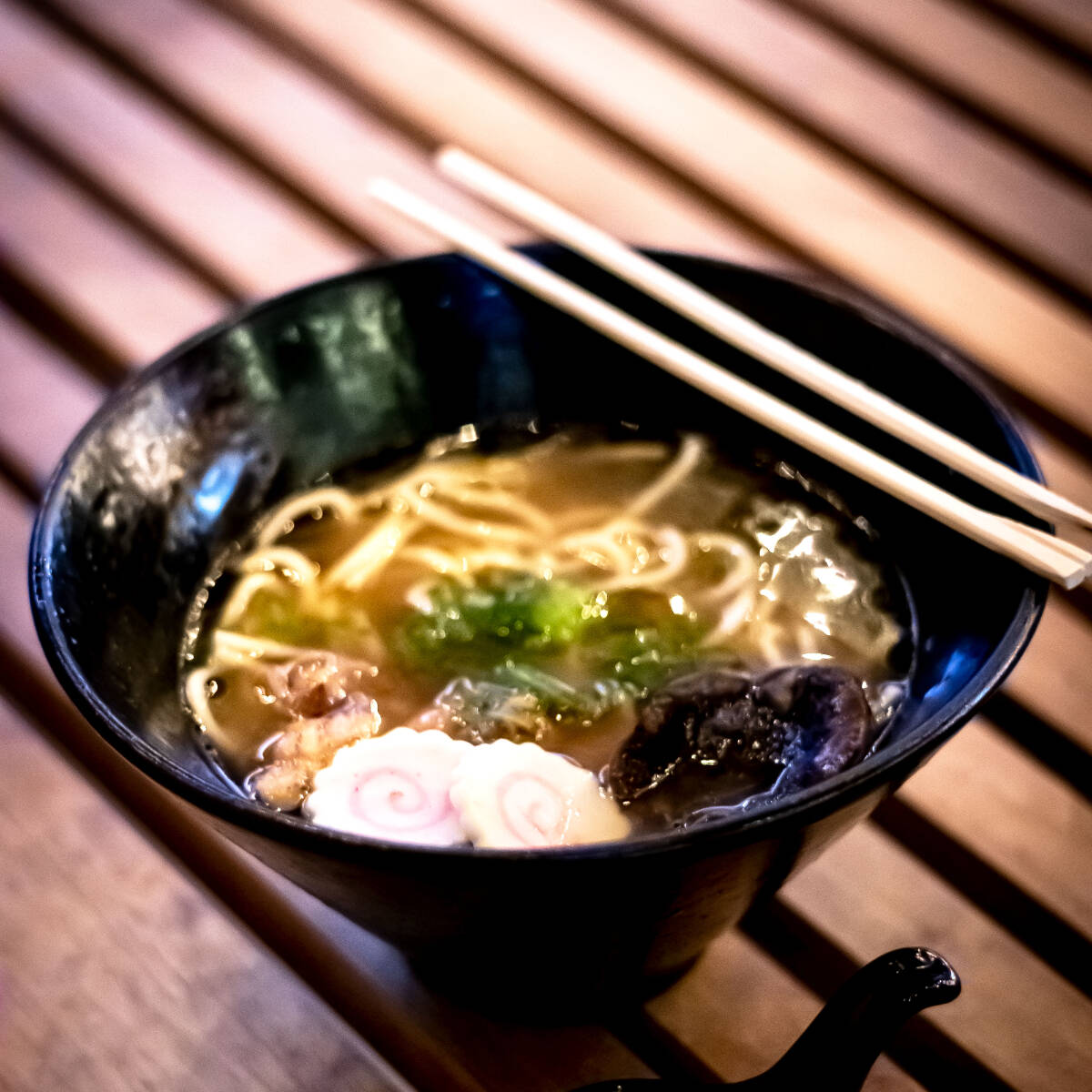 Brocheta de pollo bañada con salsa yakitori y salsa picante.