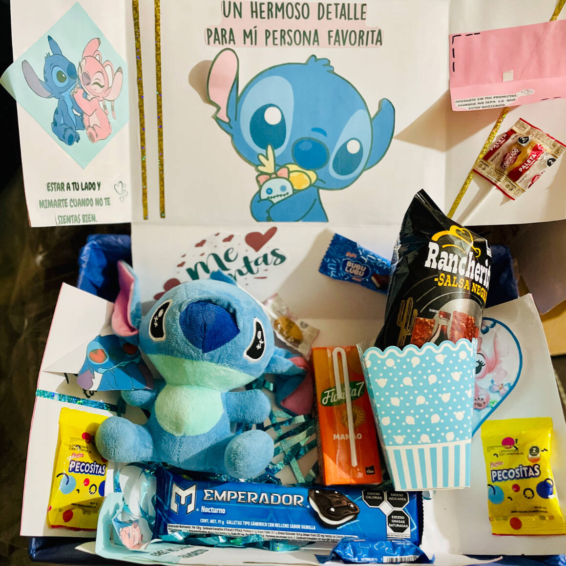 Lleva desayuno a escoger + dulces + muñeco (Nos indica hombre, mujer o niño), bebida de 200ml + bolsa de botanas o galletas+ dedicatoria