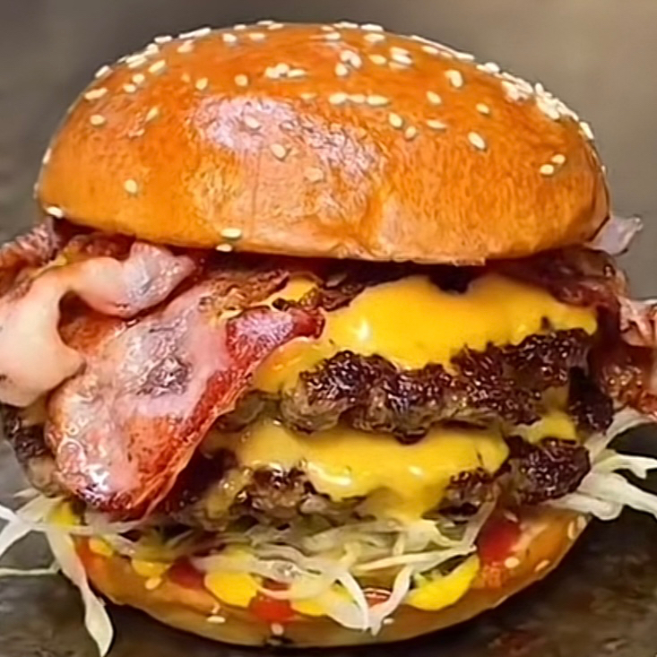 Hamburguesa con doble proteina, queso blanco, salchicha y queso Philadelphia