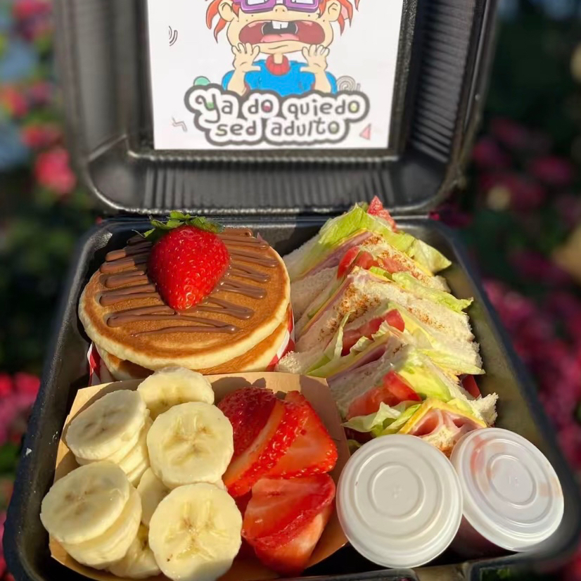 Envía el desayuno a la persona que tanto te interesa, a escoger (1); cuernito, sándwich o sincronizada opción 2: a escoger (1) ya sea Hot cakes o waffles acompañado de fruta de temporada con bebida de 20ml ; ADICIONAL LLEVA DEDICATORIA O FRASE PARA ESA PERSONITA. ;