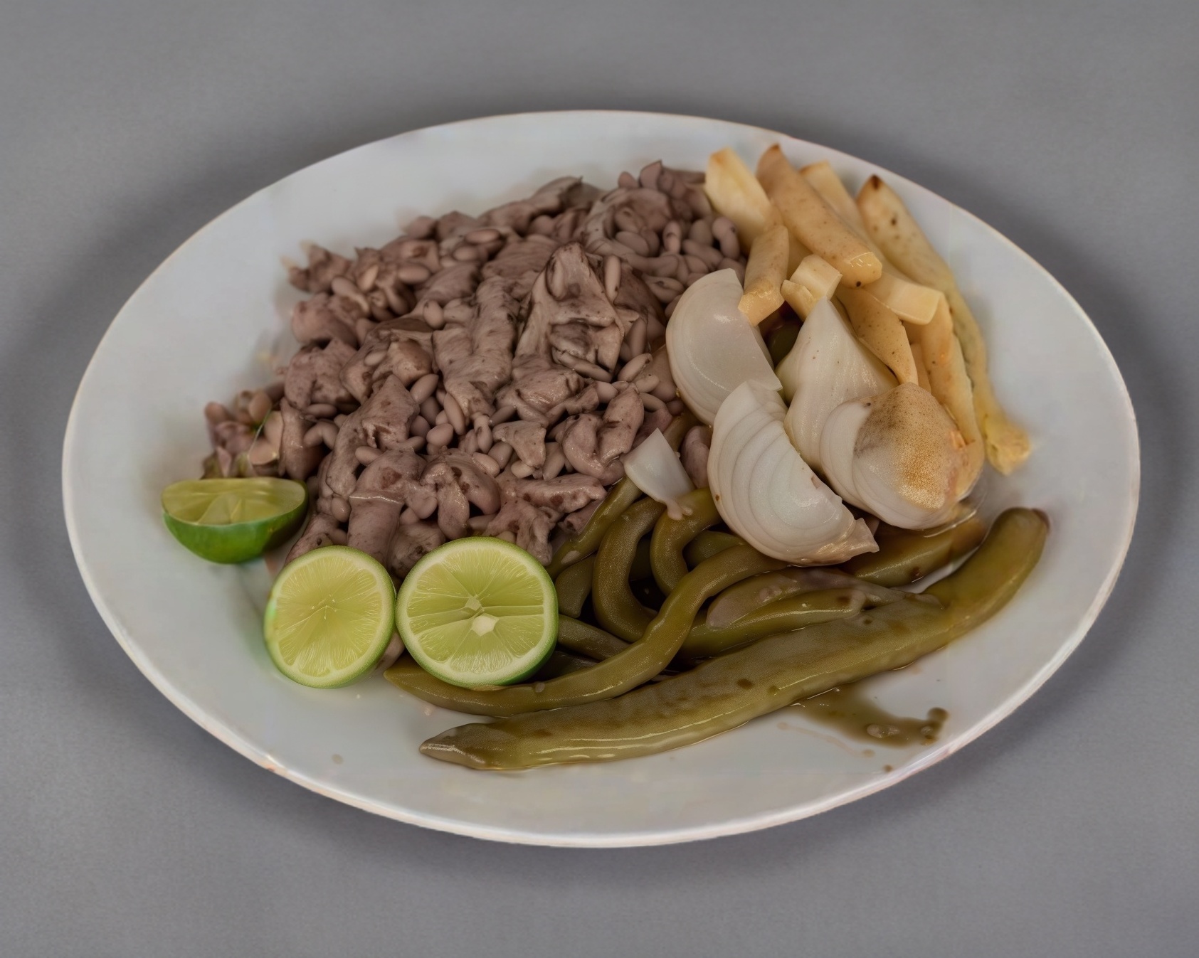 Orden de cecina 400 g, acompañado de nopales, cebollitas, papas francesas, 4 tortillas de maíz, salsa de la casa y limones.