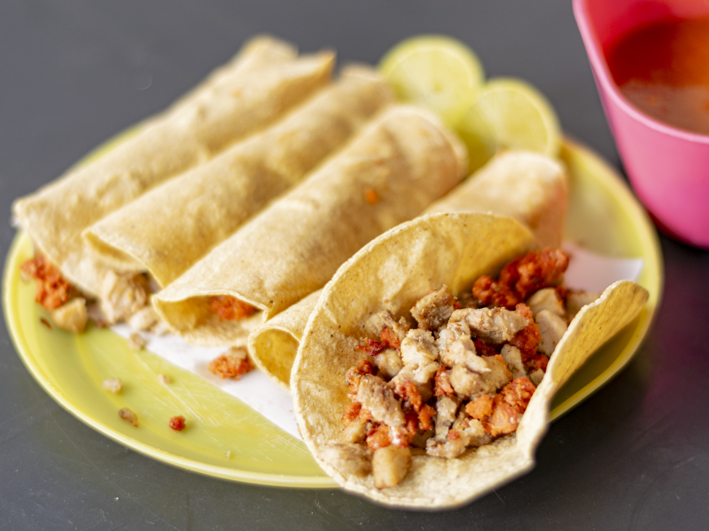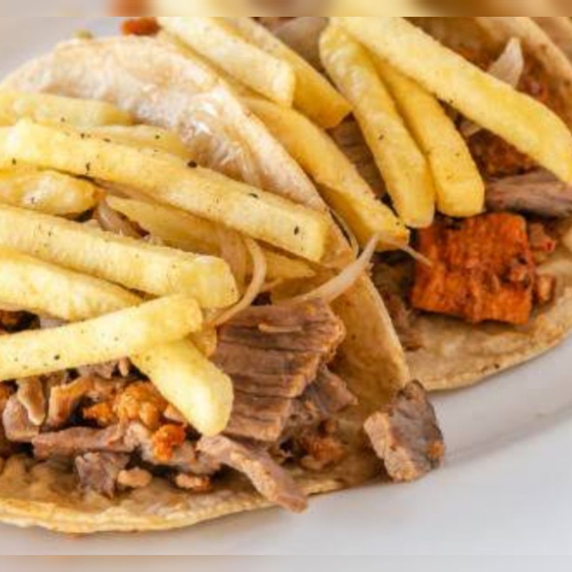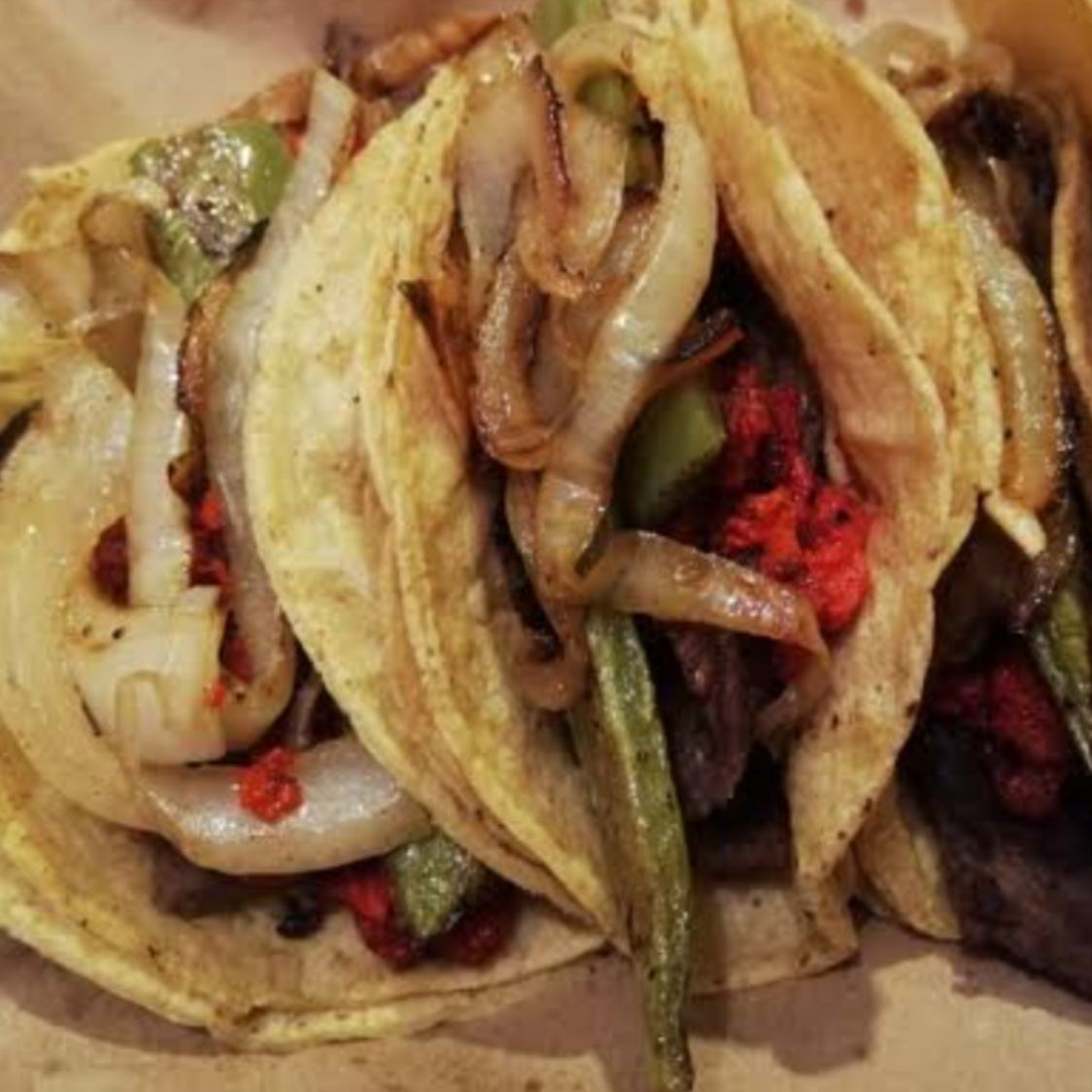 taco de bistec marinado con papas cebolla nopal salsa limon