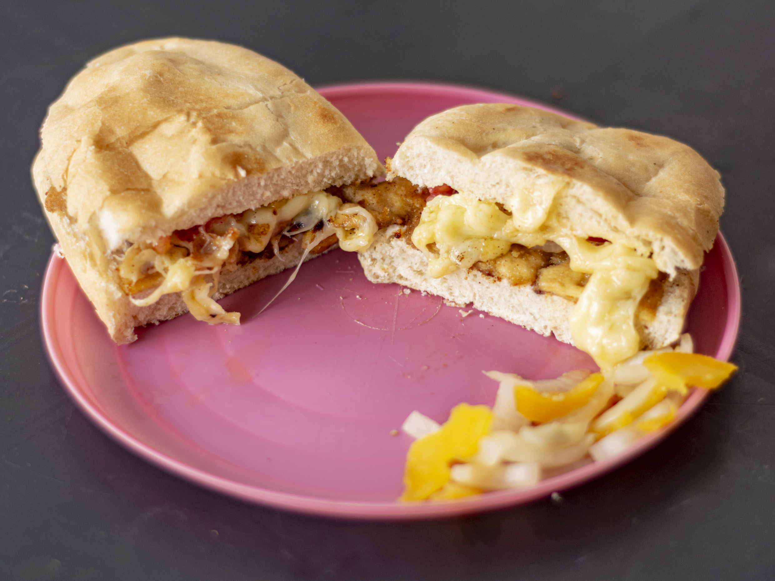 milanesa de pollo, queso mozarella fundido jitomate,mayonesa,salsa