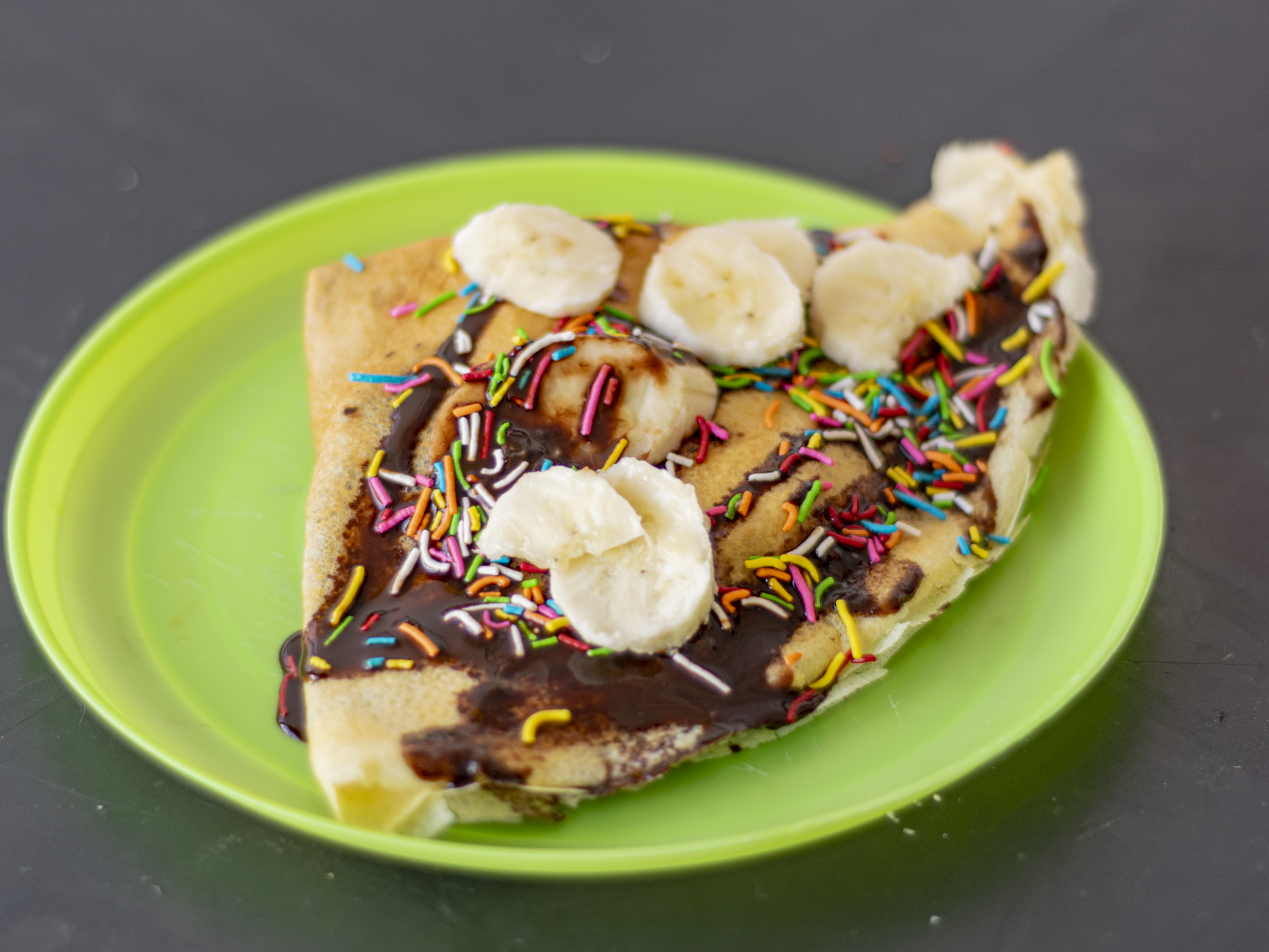 nutella,platano,chocolate liq,chispas