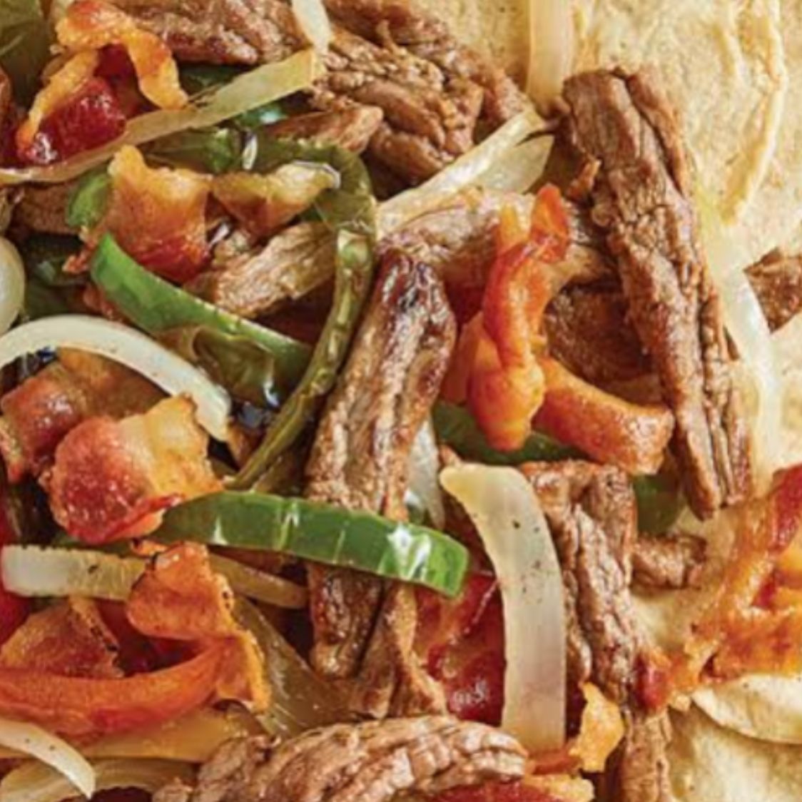 Frijoles,q mozarella fundido,bistec,longanisa, queso,crema,lechuga,salsa