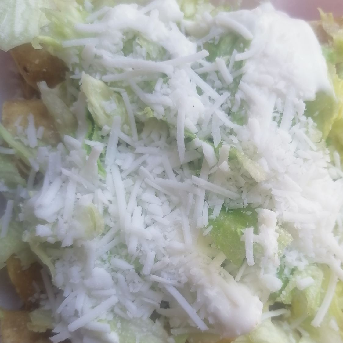 Frijoles,q fundido,milanesa pollo,queso , crema,lechuga,salsa