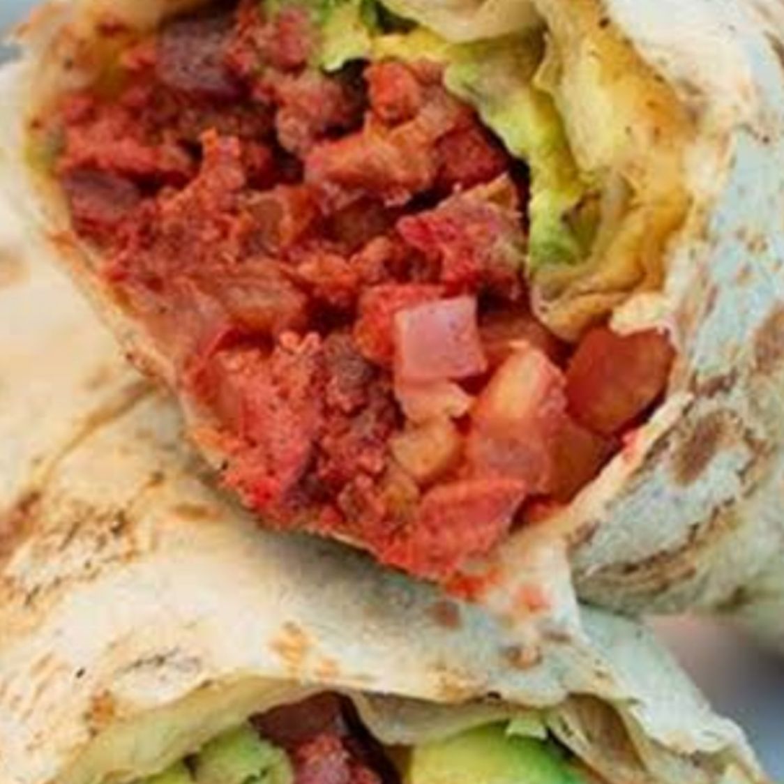 tortilla de arina con carne campechana queso lechuga salsa frijol