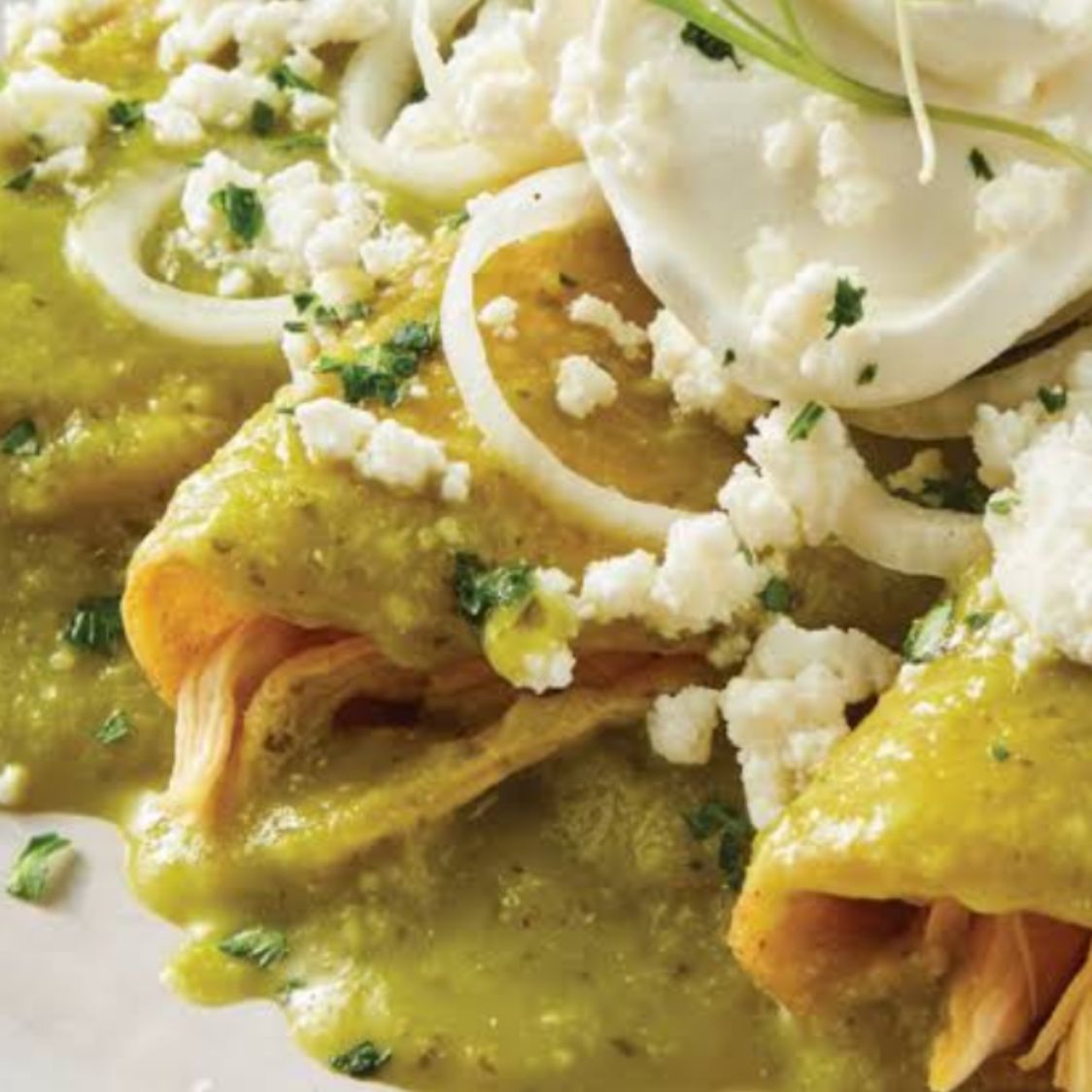 5 enchiladas de pollo crema queso lechuga y salsa verde