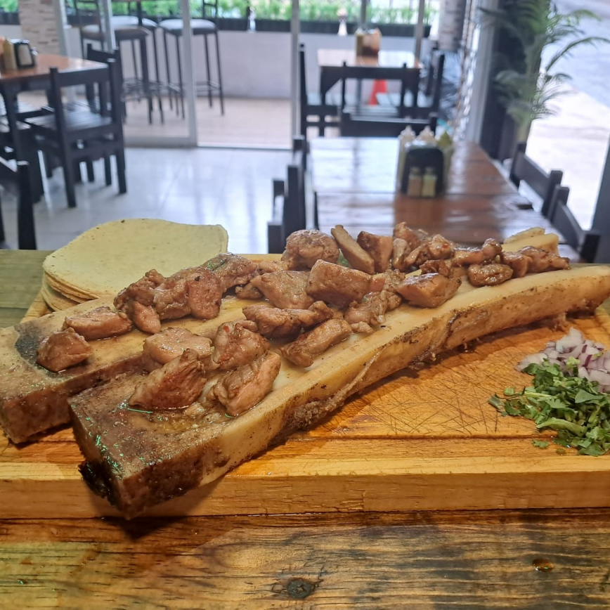 Orden de Tuétano Asado con Arrachera, acompañado de Tortillas, Cebolla y Cilantro (separado)