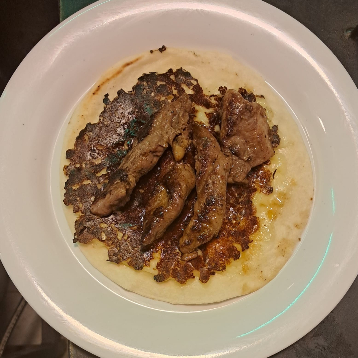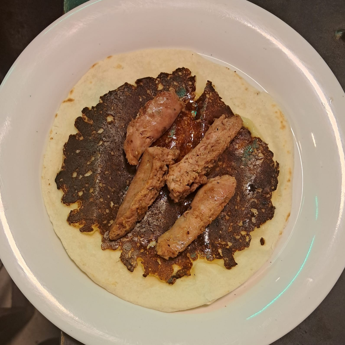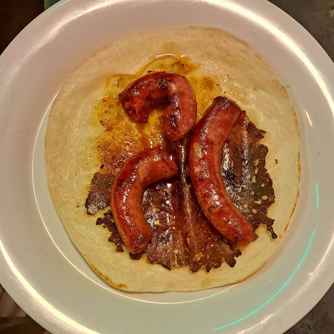 Tortilla de harina con Chorizo Argentino y costra de queso