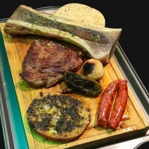 Incluye media orden de tuétano, 150 gr de corte Rib-eye Sazonado a la Mantequilla con Ajo, Chistorra, Queso Provolone a la plancha con Chimichurri o Vino tinto, Acompañado de Chile Toreado y Cebolla Cambray