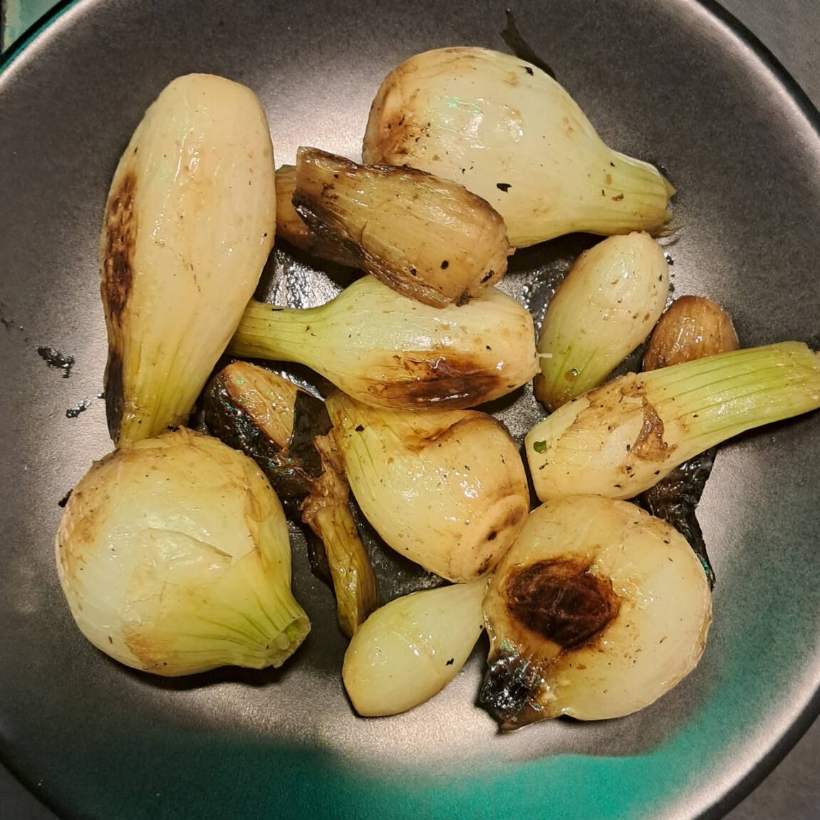 300 gr de Ribeye sazonado a la mantequilla con ajo acompañado de quesadillas, cebolla cambray, chile toreado, calabazas y Tortillas (separado)