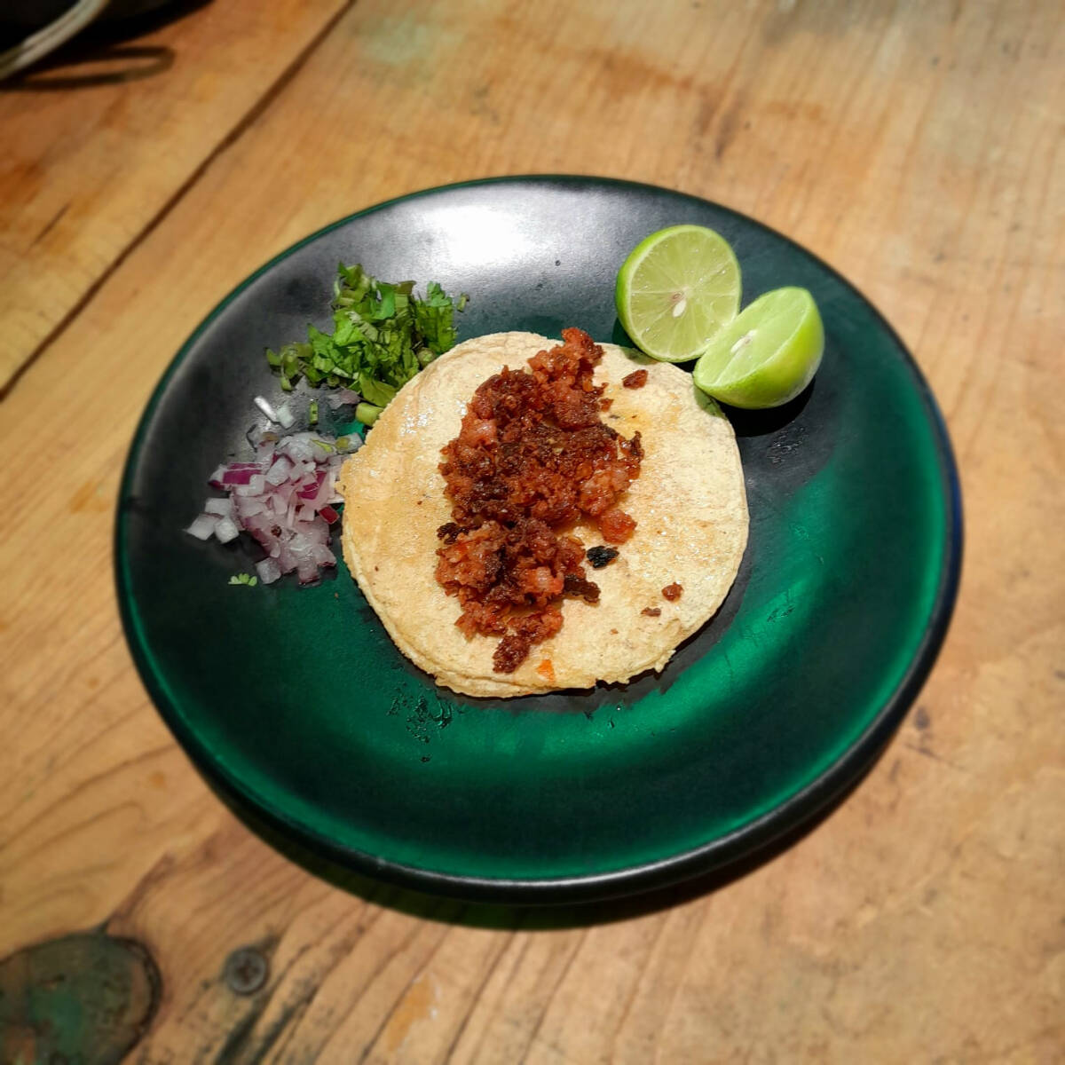 Taco campechano de Suadero de Res c/Chorizo (Tortilla de Maíz CH)