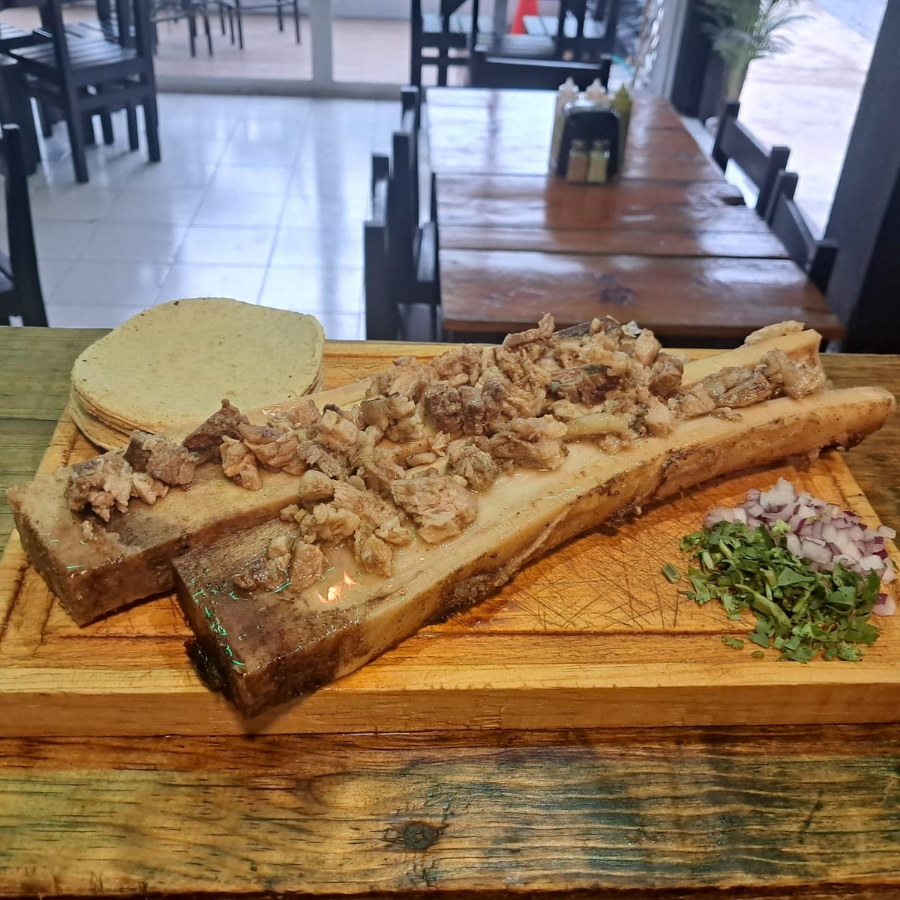Orden de Tuétano Asado con Bistec, acompañado de Tortillas, Cebolla y Cilantro (separado)