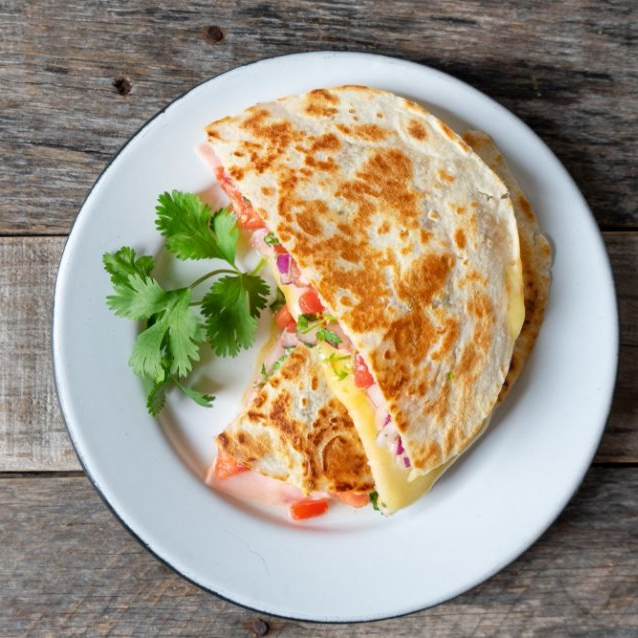 5 Deliciosas sincronizadas de tortillas de harinas hechas a mano rellenas de queso oaxaca, queso americano y jamon