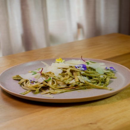 Salsa a base de albahaca, aceite de oliva, Pistache, nuez, ajo y queso parmesano